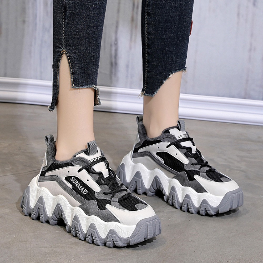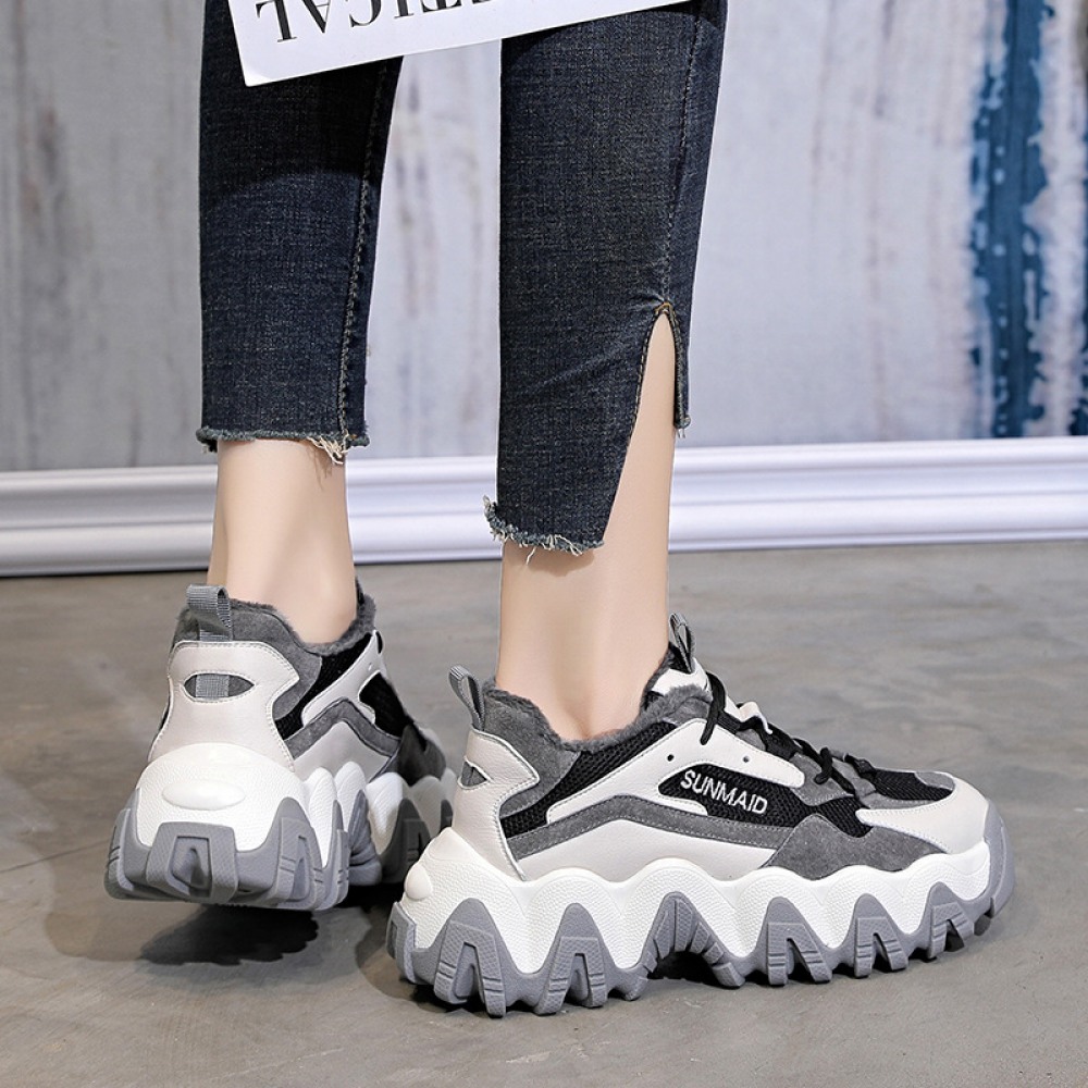 New Women's Trendy Shoes Plus Velvet Thick-Soled Increased Sports Casual Shoes