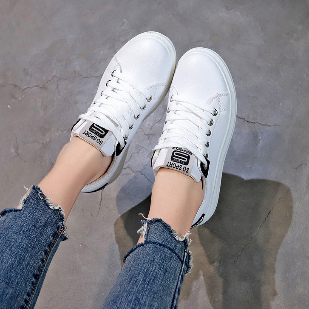 White Shoes Female New Breathable Student Board Shoes Female Flat-Bottom Lace-Up Casual Shoes
